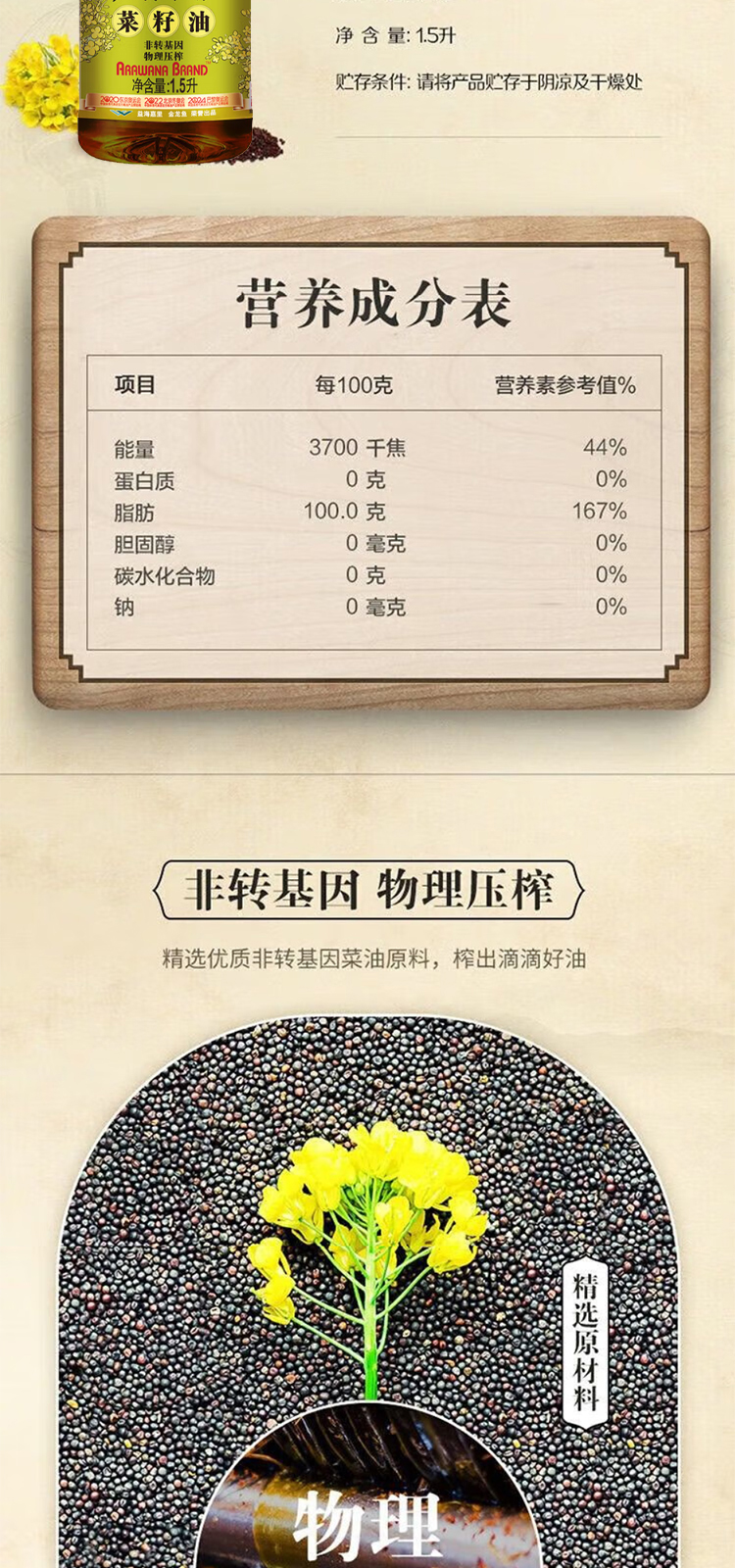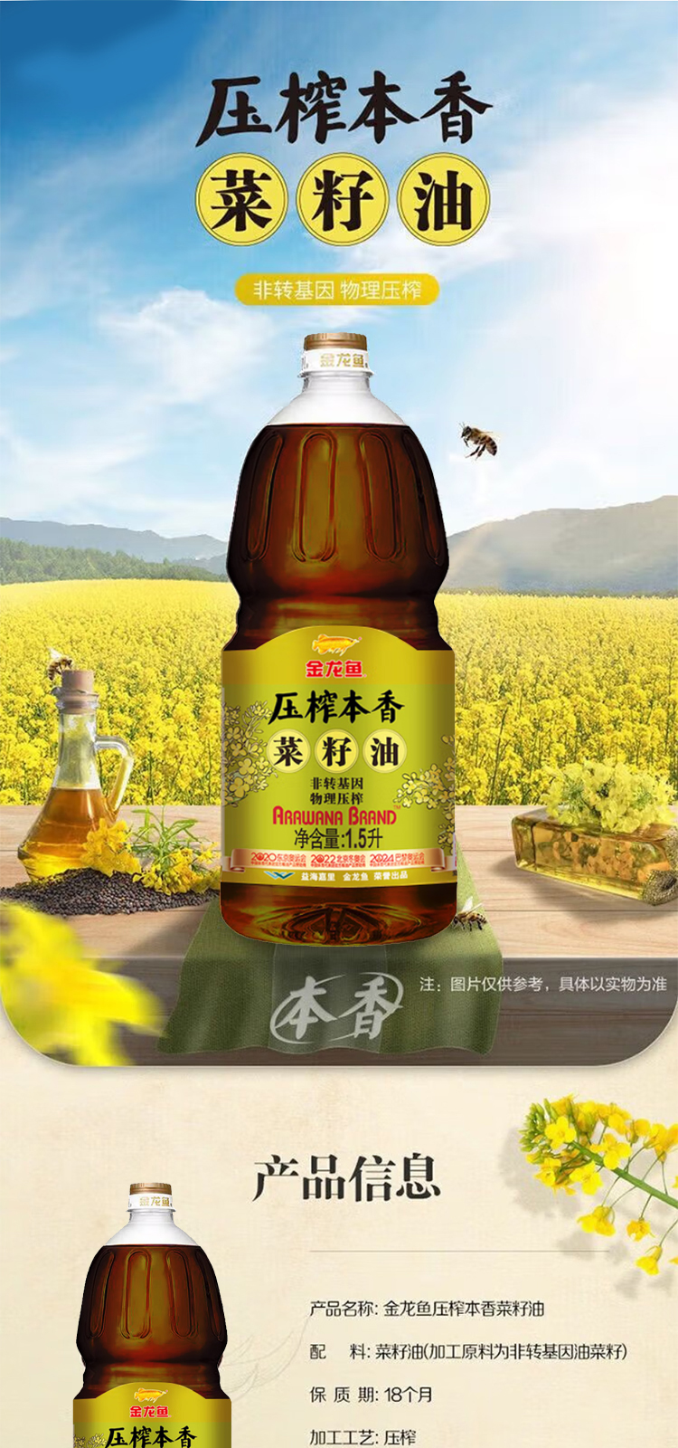 金龙鱼压榨本香菜籽油1.5L(非转压榨)